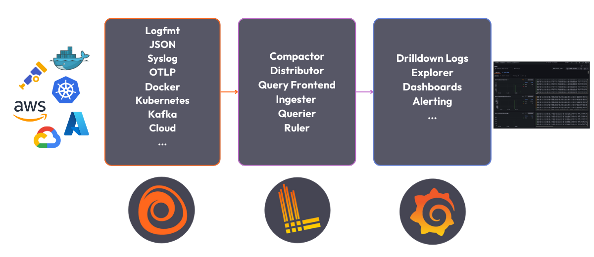 The Loki stack consists of the following components: